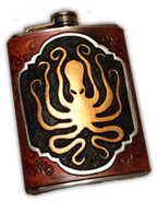 | You can choose to have a flask made to reflect your favorite fandom, organization, hobby, or a special custom design. The possibilities are endless. The leather flask covers created at A Grimm Design are completely hand crafted. From cutting out the leather, to the finally stages of stain; these leather flask covers are made entirely by Grimm. Each one is numbered, dated, and signed by the artist. |